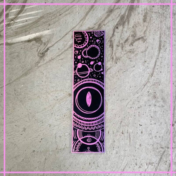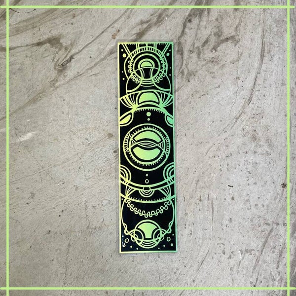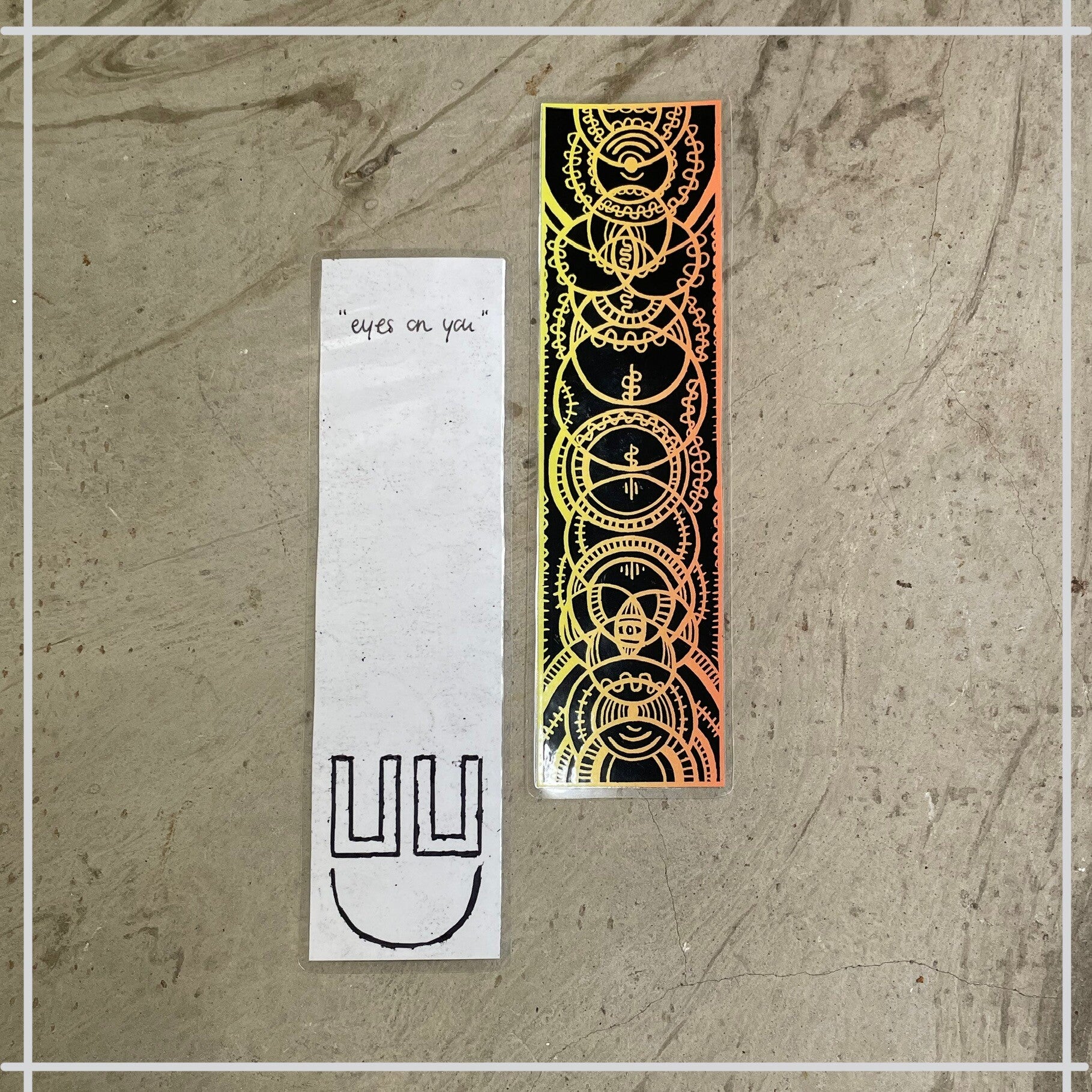 Unieke hand getekende "circle art" op zwart kraspapier. De boekenleggers zijn geplastificeerd, zo kunnen ze veilig gebruikt worden voor het markeren of bijhouden van je leesvoortgang.